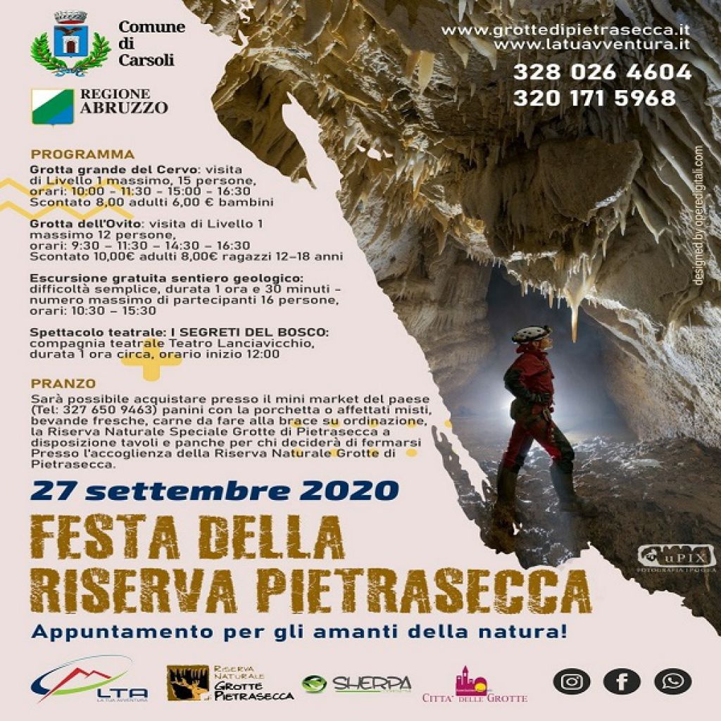Tutto pronto per la FERSTA DELLA ROSERVA a Pietrasecca, straordinaria visita alla Grotta del Cervo , alla grotta dell'Ovito, escursionale al sentiero geologico. Appiuntamento per gli amanti della natura, il 27 Settembre, un incontro con le riserve del nostro territorio.