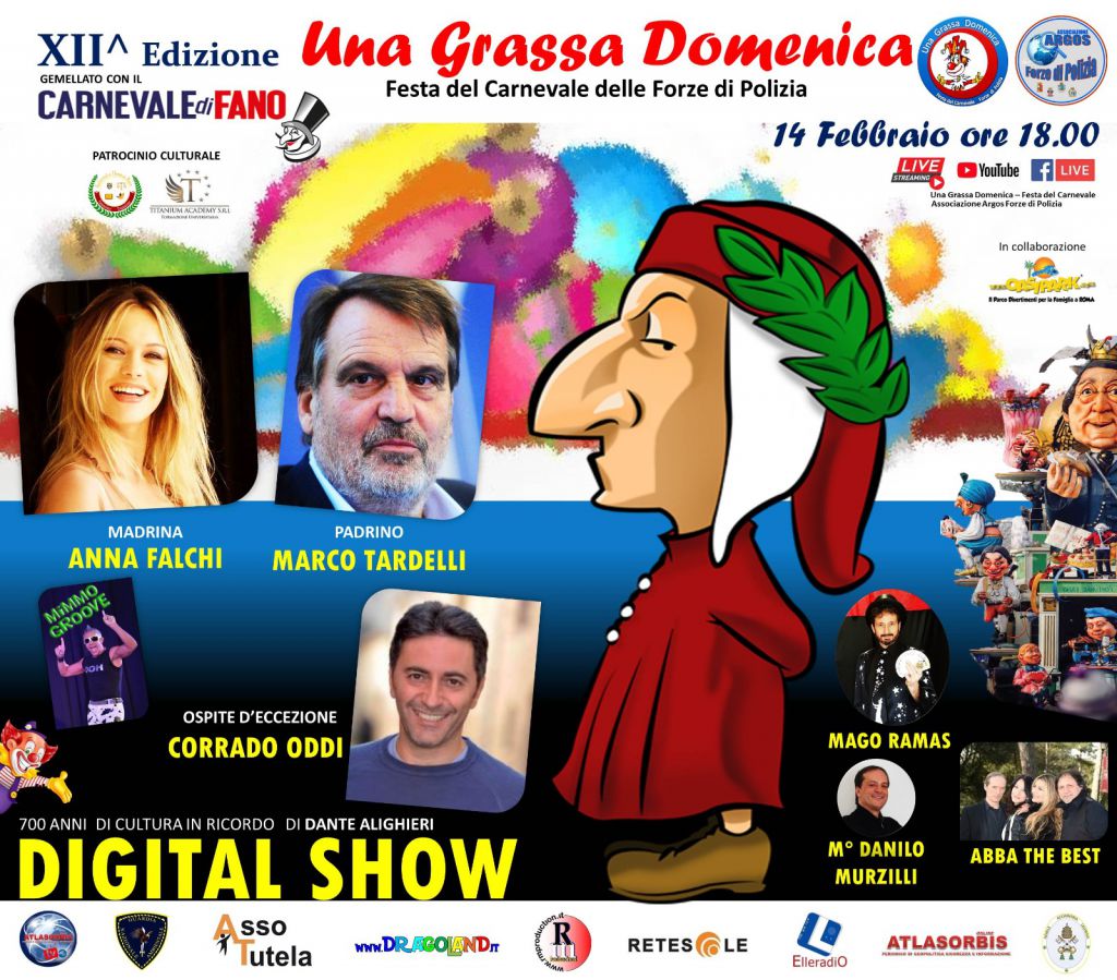 Redazione- Domenica 14 febbraio 2021, alle ore 18.00, continua il tradizionale appuntamento carnevalesco con la 12^ edizione di “Una Grassa Domenica Festa del Carnevale delle Forze di Polizia“, kermesse organizzata dal Dipartimento Spettacoli e Attività Sociali dell’Associazione ARGOS Forze di POLIZIA, in collaborazione con OASI PARK di Roma.