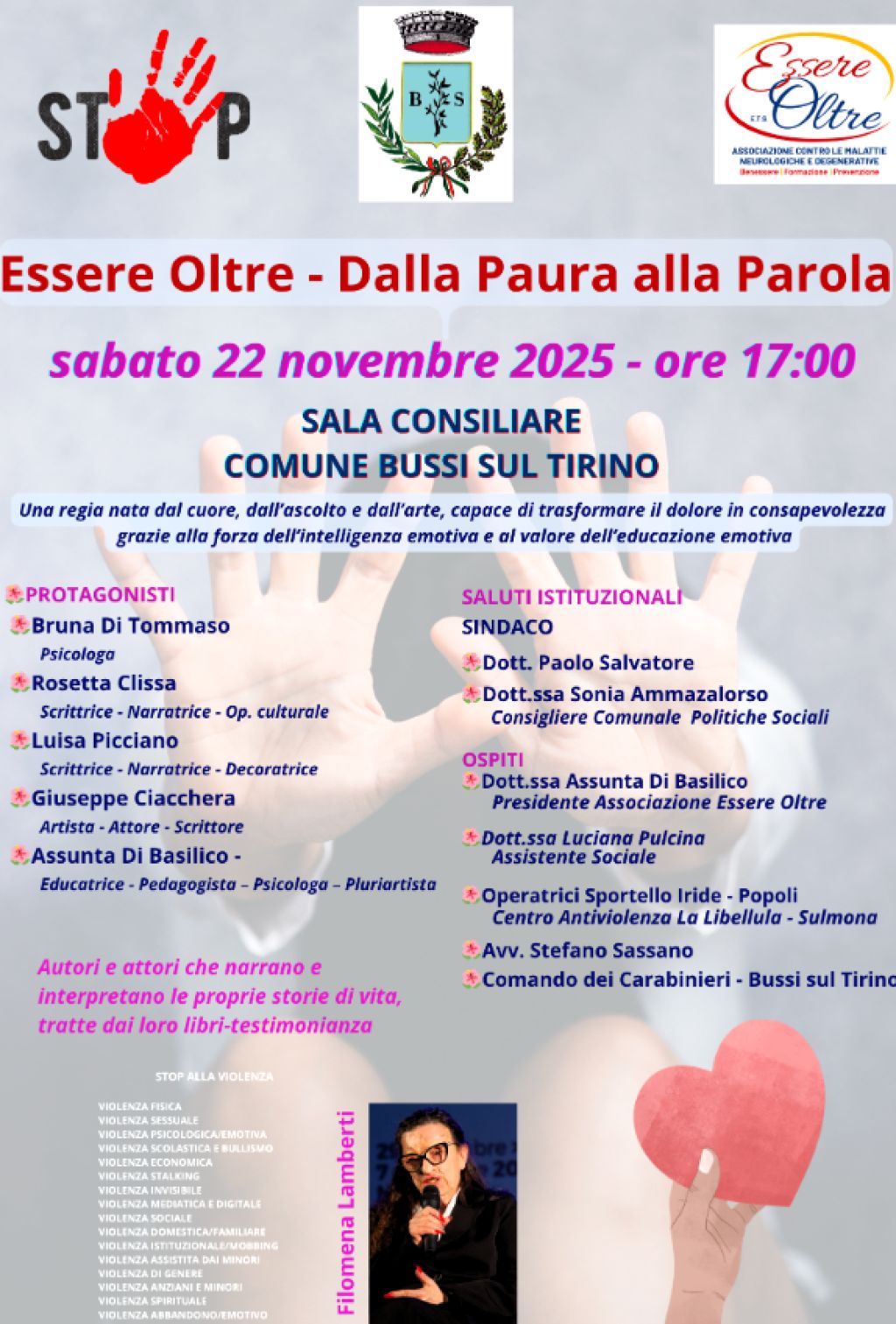 BUSSI SUL TIRINO | - ESSERE OLTRE – DALLA PAURA ALLA PAROLA -