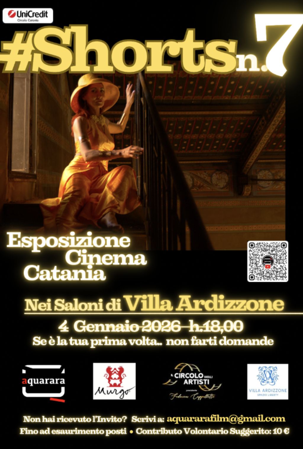 Redazione-  Domenica 4 Gennaio 2026, a partire dalle ore 18.00, torna #SHORTSl'appuntamento catanese dedicato agli addetti ai lavori del cinema siciliano, giunto alla settima edizione.Già presente in città dal alcuni anni, la festa organizzata dall’Associazione culturale “Aquarara” conferma il suo radicamento sul territorio senza però derogare dalla vocazione itinerante: quest’anno #SHORTS si svolge presso il gioiello del Liberty Catanese Villa Ardizzone.