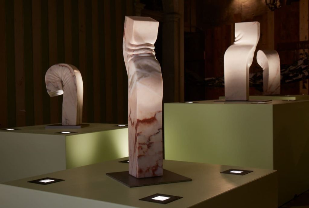 La curatela di Julia Rajacic amplifica questi contenuti, trovando nella scelta dei materiali un’ulteriore risonanza etica: marmo e metallo riciclati, scenografie realizzate con pannelli riutilizzabili, allestimenti pensati per un ciclo vitale circolare. Non un semplice principio tecnico, ma il nucleo stesso del suo lavoro curatoriale, che integra valori ambientali e responsabilità in ogni fase – dalla selezione dei materiali al trasporto, fino alla logistica e ai servizi.