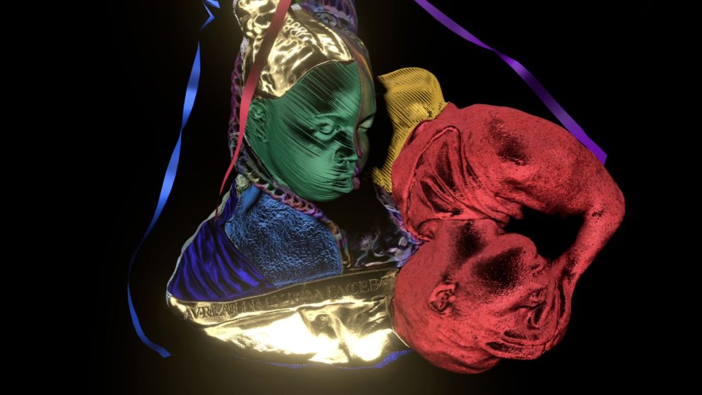 Pioniera della Net Art, capace di trasformare interazioni digitali e ambienti virtuali in scenari abitati da archetipi e memorie, Auriea Harvey con Mother/Child costruisce una riflessione intima e universale sul legame madre-figlio, dove forza e fragilità si intrecciano in un equilibrio precario e luminoso. Il poligono diventa per lei “argilla matematica”, materia immateriale che prende forma nello spazio virtuale e si traduce in presenza fisica attraverso la stampa 3D. Le superfici, morbide allo sguardo e solide al tatto, restituiscono la complessità della maternità come esperienza contraddittoria e stratificata. Harvey ha esposto nei principali musei internazionali, costruendo una pratica che unisce innovazione tecnologica e profondità scultorea.