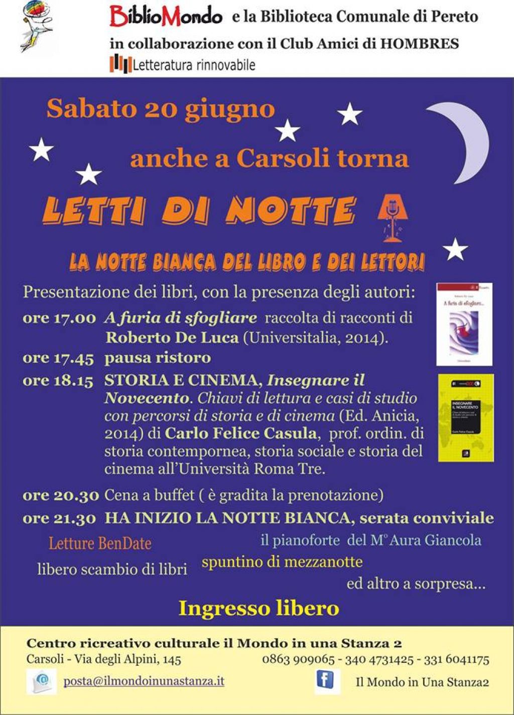 "NOTTE BIANCA"DEI LIBRI A CARSOLI