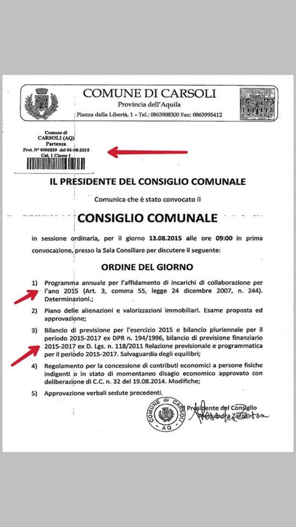 Carsoli-Sandro Proia,riguardo al Consiglio Comunale convocato per il 13 Agosto,in un suo Post sulla sua pagina Facebook,scrive:<<