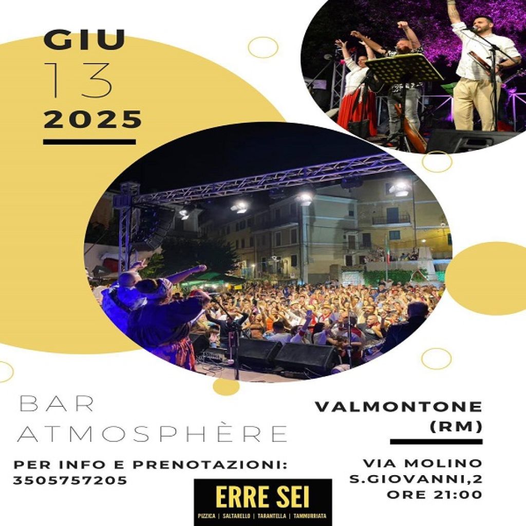 Redazione- Domani serra si balla a Valmontone , al Bar Atmosphere di via Molino San Giovanni 2. Dalle ore 21 arrivano gli ERRESEI, con la loro travolgente musica popolare, pizzica, saltarello, tarantella e tanto altro. Una serata all'insegna del divertimento, dell'allegria, e di tanto ballo poplare, e allora che facciamo ...........