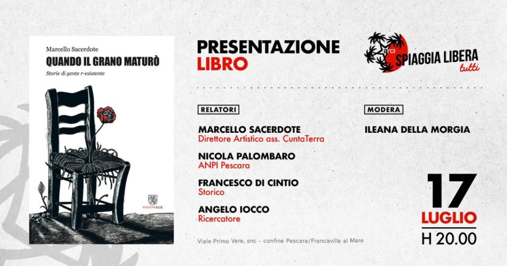 Redazione- Un viaggio nella dignità delle lotte contadine, nelle storie di resistenza e nel cuore della nostra terra d'Abruzzo, giovedì 17 luglio alle 20:00 ad ARCI Spiaggia Libera Tutti, con la presentazione del libro “Quando il grano maturò” di Marcello Sacerdote. Il volume, tratto dall’omonimo spettacolo teatrale dell’associazione Cunta Terra, nasce da un lungo lavoro di ricerca e restituzione orale e scritta, per ridare voce a storie dimenticate ma ancora vive.