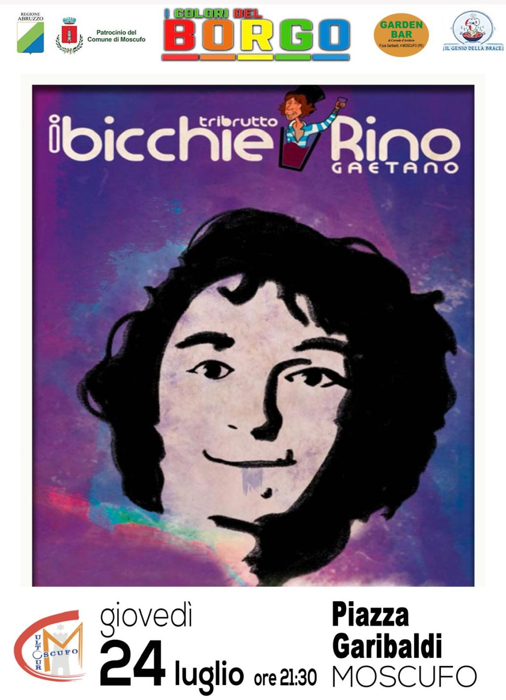 L'evento, organizzato da Cultour Moscufo presieduta da Mimmo Ferri, e che gode del patrocinio del Comune di Moscufo e della Presidenza della Regione Abruzzo, vedrà protagonisti i Bicchierino, talentuosa cover band che ripercorrerà la carriera artistica di Rino Gaetano.