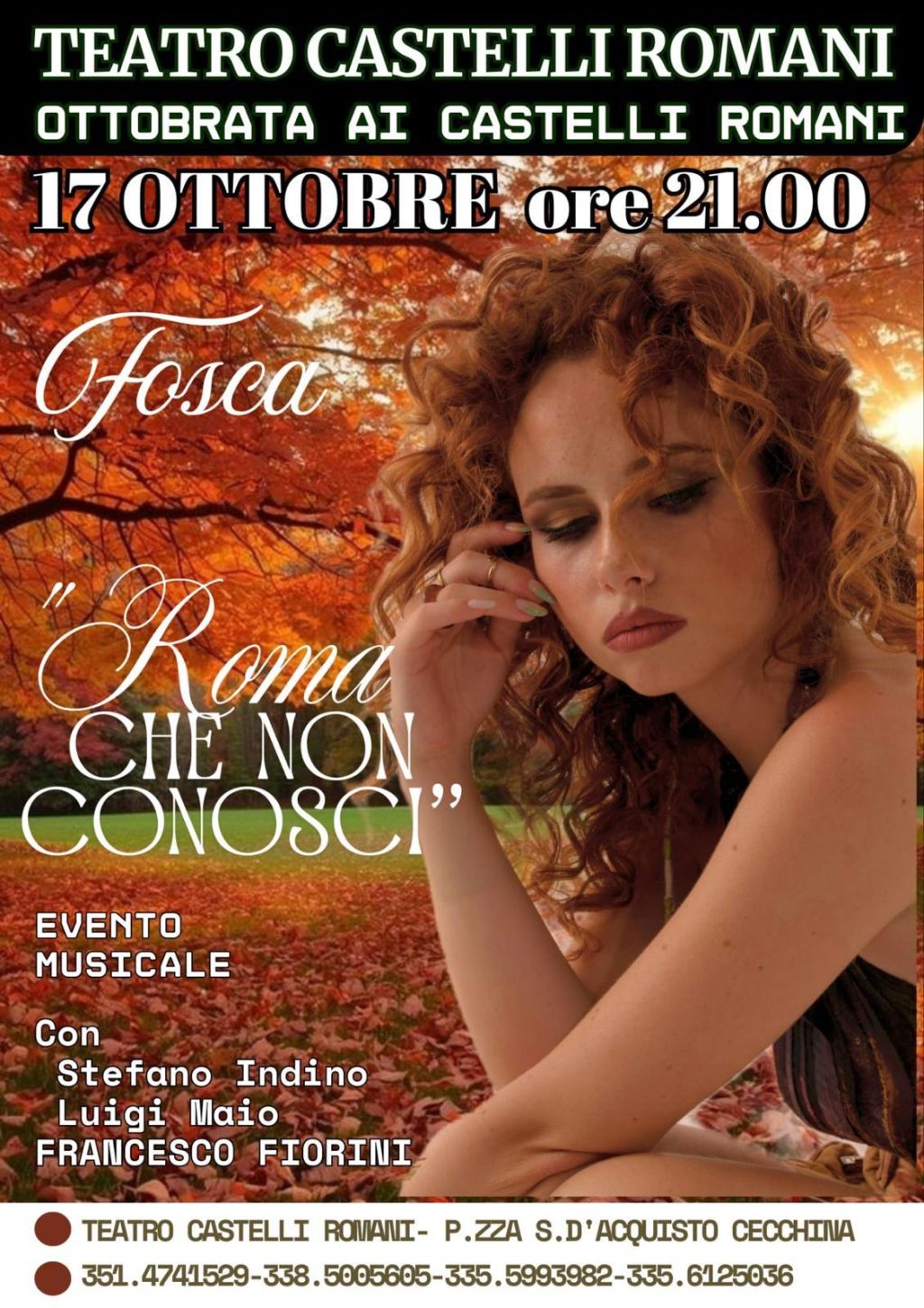 Si inizia il 3 ottobre sulle note de “Le Trisarmoniche” di Stefano Indino, Claudio Ginobi e Denis Negroponte. Si prosegue il 17 ottobre con il concerto di Fosca “La Roma che non conosci”, accompagnata da Stefano Indino e Luigi Maio. Il 24 ottobre sarà la volta quindi della travolgente comicità dei “Sequestrattori”: Christian Generosi e Barbara Boscolo che proporranno il loro “Bella Bro”. A chiudere il programma il 31 ottobre invece sarà ancora il cabaret di Marco Capretti con “Vero o Falso”.