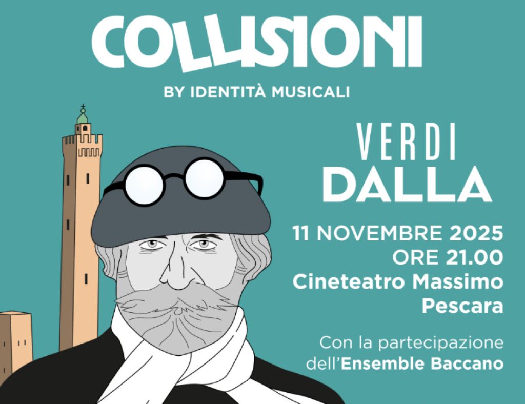 Lo spettacolo Collisioni. Verdi vs Dalla è realizzato all’interno del Festival Internazionale Alessandro Cicognini, diretto da Davide Cavuti, con il sostegno del Ministero della Cultura. L’appuntamento è per martedì 11 novembre alle ore 21.00 presso il Cineteatro Massimo di Pescara.