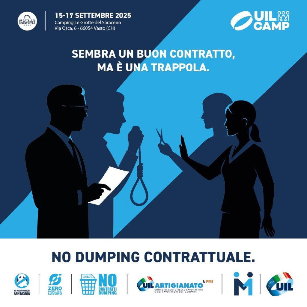 Redazione – Per il secondo anno consecutivo l’Abruzzo ospita l’evento nazionale di alta formazione sindacale della Uil. Dal 15 al 17 settembre alla Grotta del Saraceno a Vasto (Ch), 100 sindacalisti provenienti da tutta Italia parteciperanno a Uil Camp 2025. Contratti pirata e dumping salariale, welfare pubblico e contrattuale, precarietà e sicurezza sul lavoro, ecomafie e difesa del territorio sono gli argomenti che verranno trattati nell’edizione di quest’anno, organizzata da Uil Abruzzo in collaborazione con il Premio nazionale Paolo Borsellino. Autorevoli ospiti del mondo accademico, istituzionale e imprenditoriale si confronteranno con i sindacalisti di domani con speech, tavole rotonde, gruppi di lavoro e dibattiti.