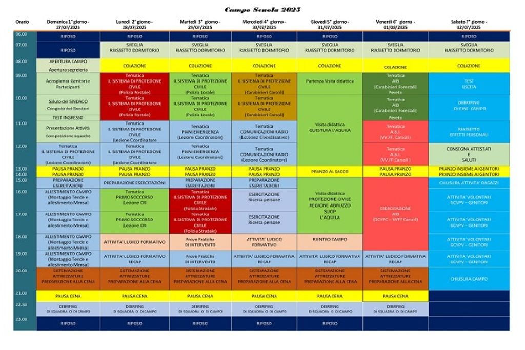 Redazione- Dal 27 luglio al 2 agosto 2025 ? Area dell’Ex MAEL, via Turanense – Carsoli (AQ) La Protezione Civile Carsoli - Gruppo Comunale ricorda che sono ancora disponibili alcuni posti per il Campo Scuola estivo dedicato a ragazze e ragazzi dai 10 ai 13 anni. ?♂️ Un’occasione unica per: • Scoprire il sistema della protezione civile e il ruolo delle istituzioni; • Crescere in consapevolezza e responsabilità verso il territorio; • Imparare la cultura della prevenzione e della sicurezza; • Stimolare il senso civico e la partecipazione attiva alla comunità. ✅ Partecipazione gratuita ✅ Posti limitati a 20 partecipanti, ancora posti disponibili ? Scarica il modulo di pre-iscrizione: http://bit.ly/4ljnvkW Per maggiori informazioni: ?