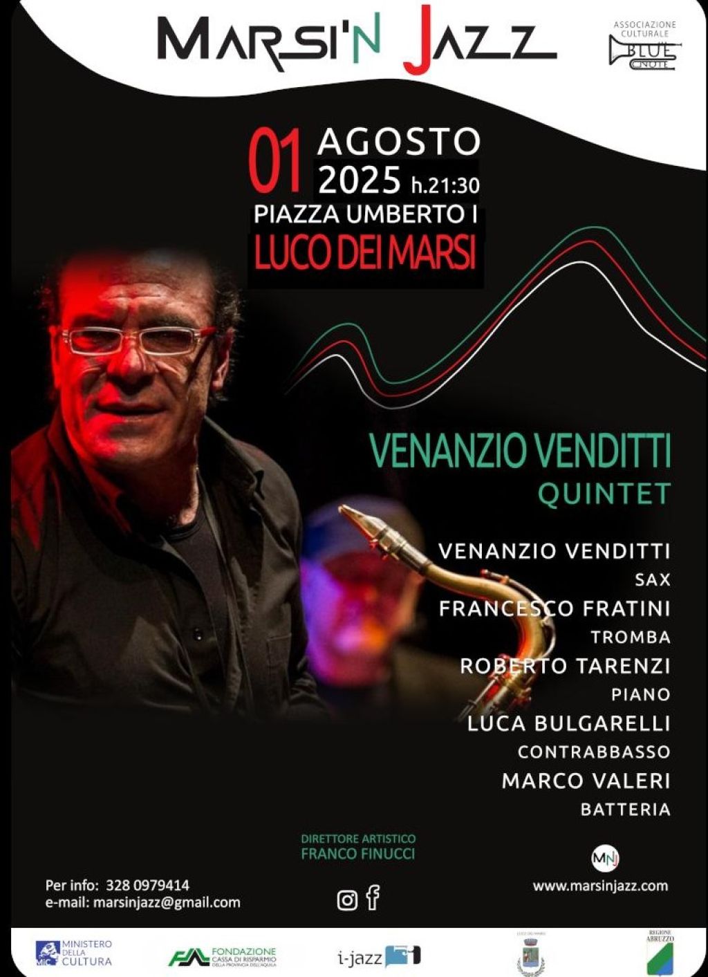 Redazione- Sarà la centralissima piazza Umberto I a incorniciare venerdì, 1° agosto, alle 21.30, il "Jazz sotto le stelle" del Venanzio Venditti Quartet, evento tra i più attesi e amati della rassegna estiva a tema “Vacanze luchesi”, all'ottava edizione. Il concerto, annoverato nel festival itinerante Marsi'n Jazz, è infatti un appuntamento imperdibile per gli appassionati del genere e non solo, avvinti, ogni volta, da sonorità in grado di condensare le ispirazioni e le atmosfere evocative dello scintillante jazz colto e composito degli anni ’50 e ’60, e da emozioni sempre nuove, distillate con sapienza e talento da Venanzio Venditti, reduce, tra l'altro, da nuovi cristallini successi raccolti nel tour di presentazione di “Inside”, l'ultima incisione, in ordine di tempo, dell'Artista di origini luchesi.