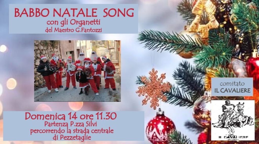 Redazione- Il comitato IL CAVALIERE, per il giorno 14 Dicembre invita tutti ad ascoltare i BABBO NATALE SONG CON L'ORGANETTO del maestro FANTOZZI.
