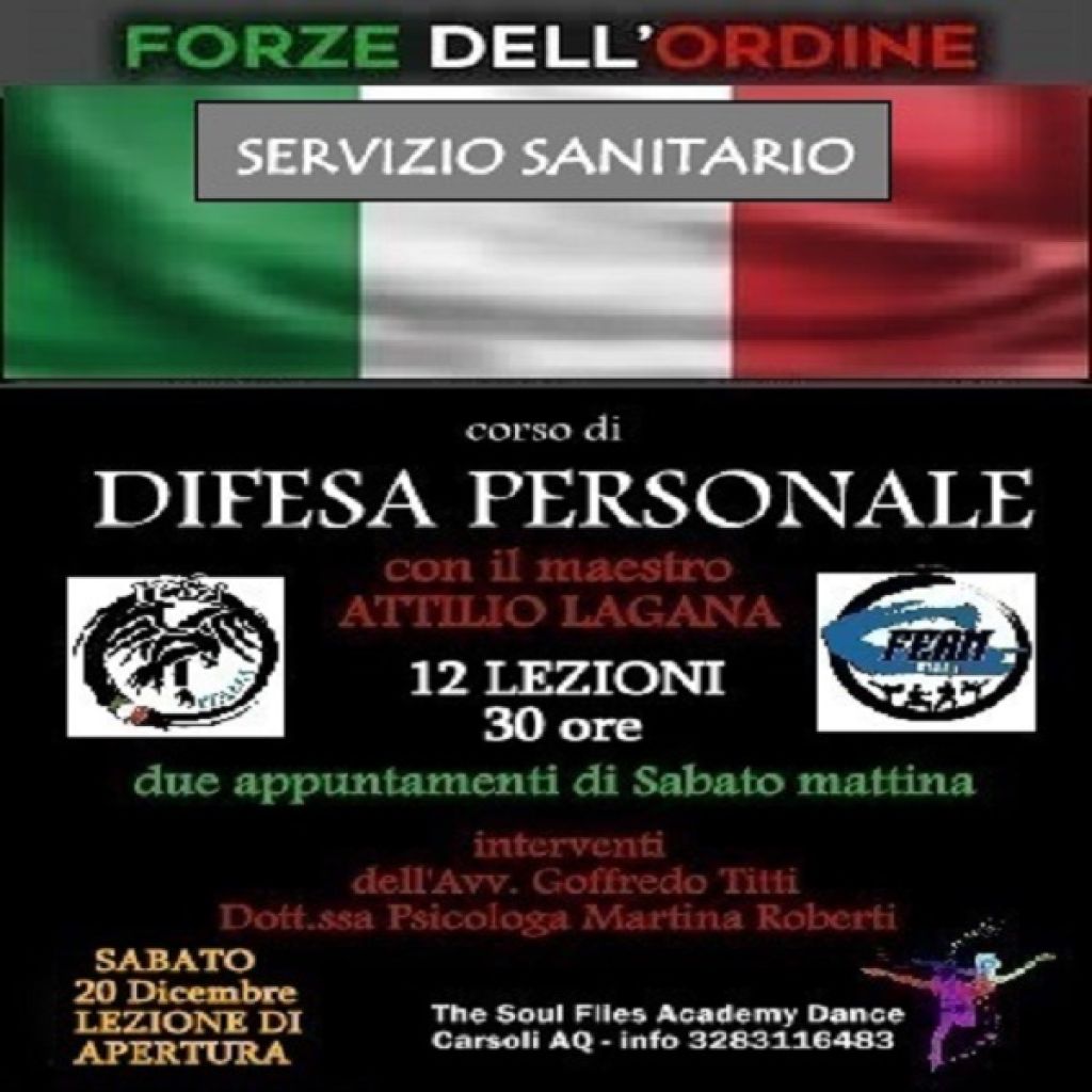 Redazione- Parte a Carsoli presso la THE SOUL FLIES ACCADEMY DANCE DIFESA PERSONALE, il primo corso di DIFESA PERSONALE per le forze dell'Ordine, e del servizio Sanitario, diretto dal maestro ATTILIO LAGANA. 12 lezioni ,30 ore.