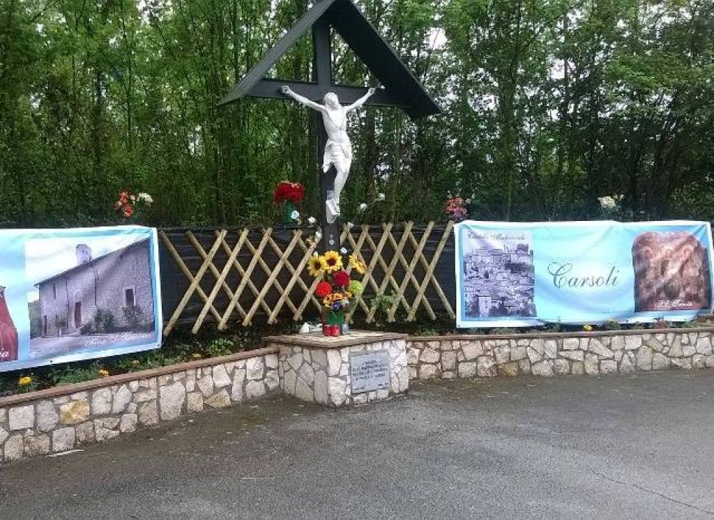 Carsoli–Una donna di Carsoli, si è fatta promotrice della riqualificazione di una area situata all’ingresso del paese nei pressi del Cimitero Comunale. Una croce con il Cristo disadorna ed attorno alla quale erano presenti erbacce e degrado. Di qui è scattata l’iniziativa, se non ci pensa il pubblico a restituire il decoro ci pensa dunque il privato. La donna si è fatta dunque carico di ripulire l’area, e con l’aiuto di qualche altra persona che ha contribuito economicamente ha progettato e ristrutturato questo angolo di fede cristiana. Due striscioni laterali, con immagini della Ss. Trinità, e delle Chiese di Carsoli, un muretto realizzato con pietra a faccia vista ed il decoro è stato restituito. La promotrice, non vuole essere menzionata, sicuramente per custodire l’integrità di questo gesto sicuramente encomiabile.
